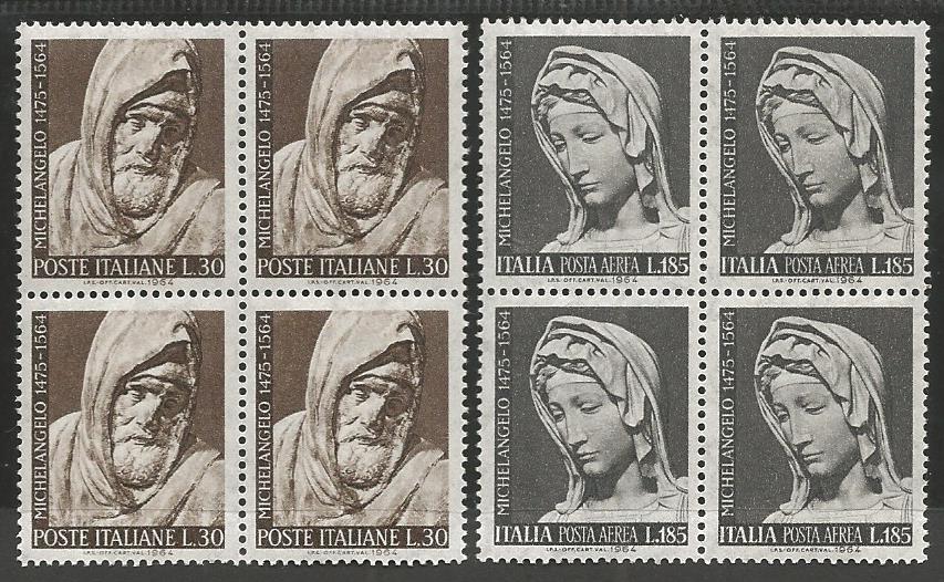 HomeFrancobolliItaliaFrancobolli Italia Spezzature NuoveQuartine4° CENTENARIO MORTE DI MICHELANGELO – 18/02/64