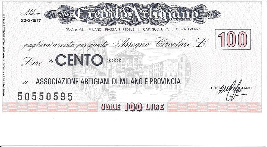 ASSOCIAZIONE ARTIGIANI – 100 Lire – MILANO – 22/02/77