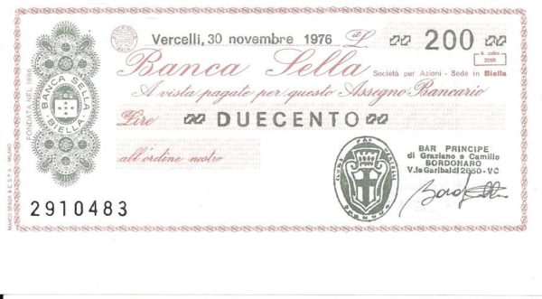 BAR PRINCIPE BORDONARO – VERCELLI – Lire 200 – 30/11/76