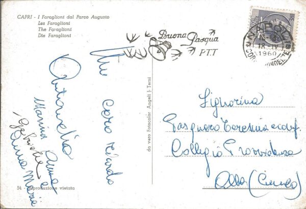 HomeCartolineItaliaCampaniaNapoliCAPRI – I Faraglioni dal Parco Augusto – 18/04/60