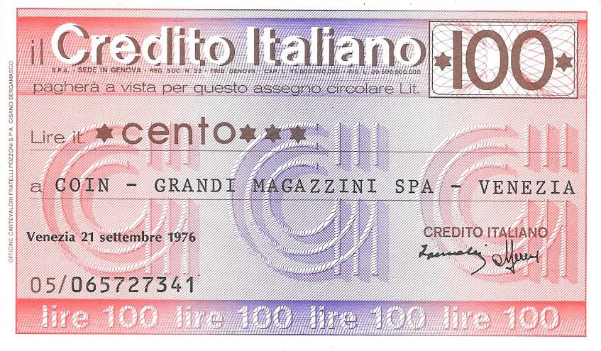 COIN GRANDI MAGAZZINI S.p.A. – 100 Lire – VENEZIA – 21/09/76