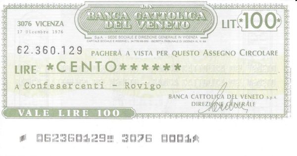 Categories: BANCA CATTOLICA VENETO, Miniassegni, Monete & banconote